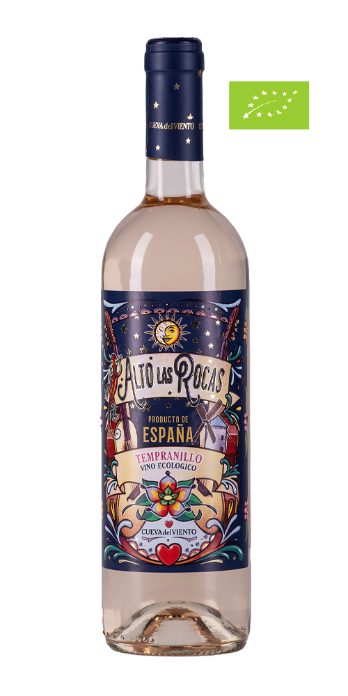 Alto las Rocas er lavet på 100% Tempranillo, hvis mørkeblå skaller har nået at give vinen i glasset en sart, lakserød farve med et skær af orange. Den intense duftpalet er sat sammen af fersken og hindbær, og de røde frugter går igen i smagen sammen med et forfriskende pift af citrus. Rosatoén har god længde i munden med velsmag og god balance fra først til sidst, hvor festen slutter med en præcis frugtsyre. En fremragende, kølig rosé på den spanske signaturdrue, dyrket på den gloende, hede castilianske højslette ─ de færreste ville have troet at det var muligt, og næppe heller Tommasos bedstefar.